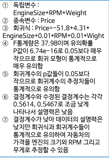 728x90 다중선형 회귀분석 [그림1] 다중선형회귀분석 예제 출력 출처 : 2020 전면 개정판 ADsP 데이터 분석 준전문가 DATAEDU 728x90 공유하기 게시글 관리 포장빵의 IT 저작자표시 비영리 변경금지 (새창열림)