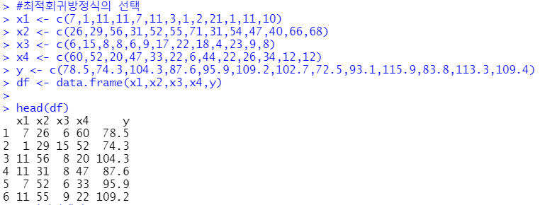 최적회귀방정식의 선택