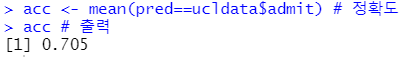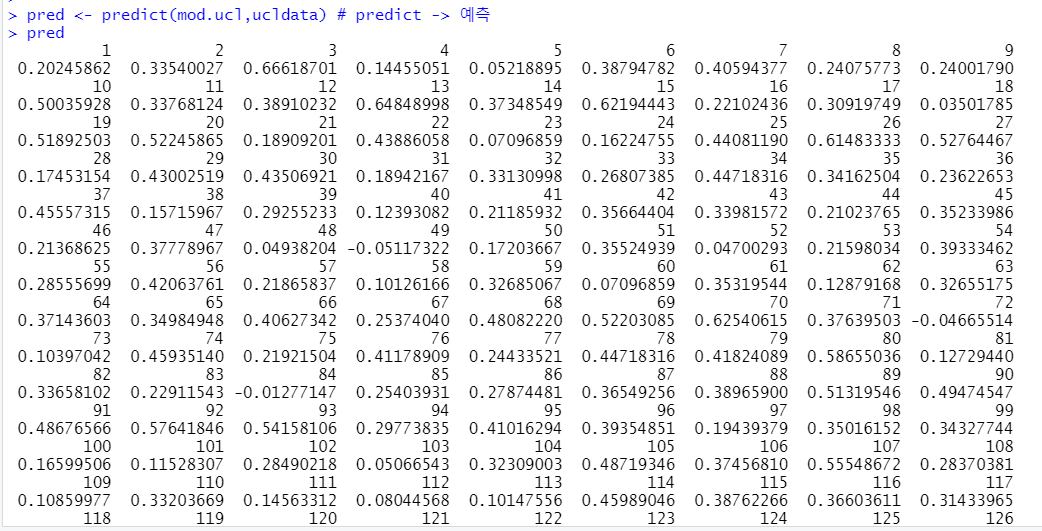 pred <- predict(mod.ucl,ucldata) # predict -> 예측