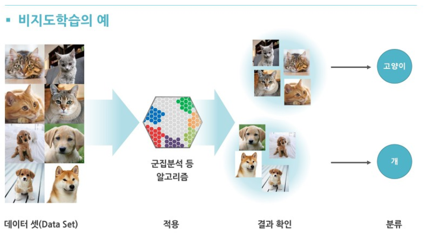 - 비지도학습(Unsupervised Data Prediction) : OLAP, 연관성 규칙발견, 군집분석, SOM