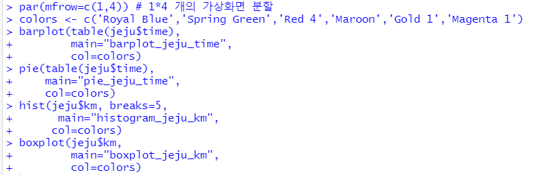 par(mfrow=c(1,4)) # 1*4 개의 가상화면 분할