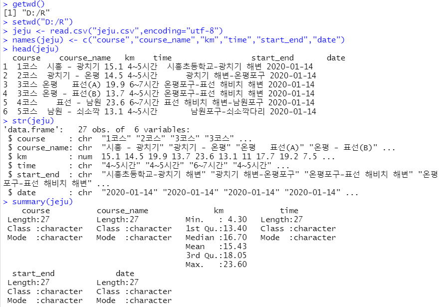 names(jeju) <- c("course","course_name","km","time","start_end","date")